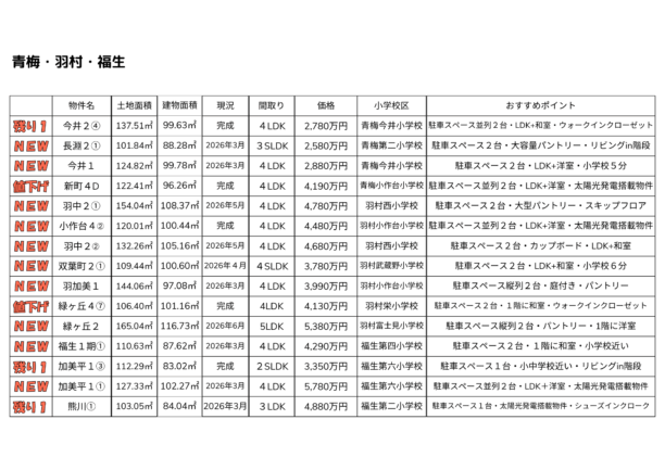 【最新】青梅市・羽村市・福生市新築分譲住宅情報
