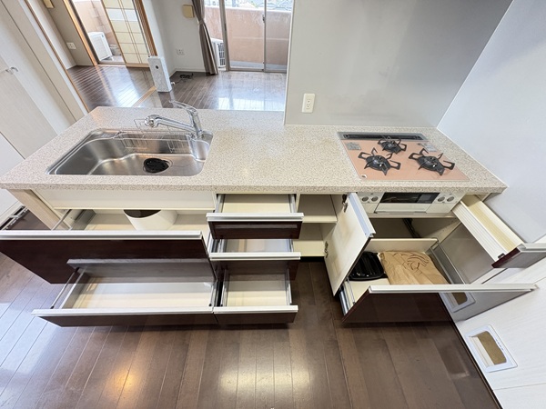 キッチン,システムキッチン,グリル,浄⽔器,収納スペース,全居室収納,クローゼット,照明器具,ダウンライト,室内洗濯機置場,