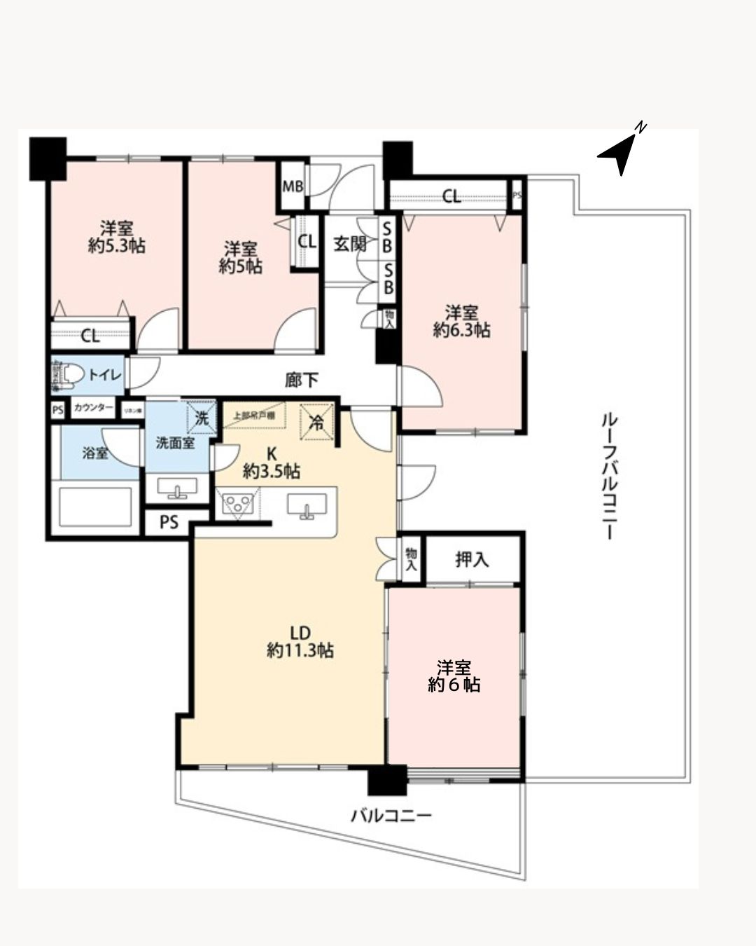 間取り:洋6.3・洋6・洋5.3・洋5・LDK14.8