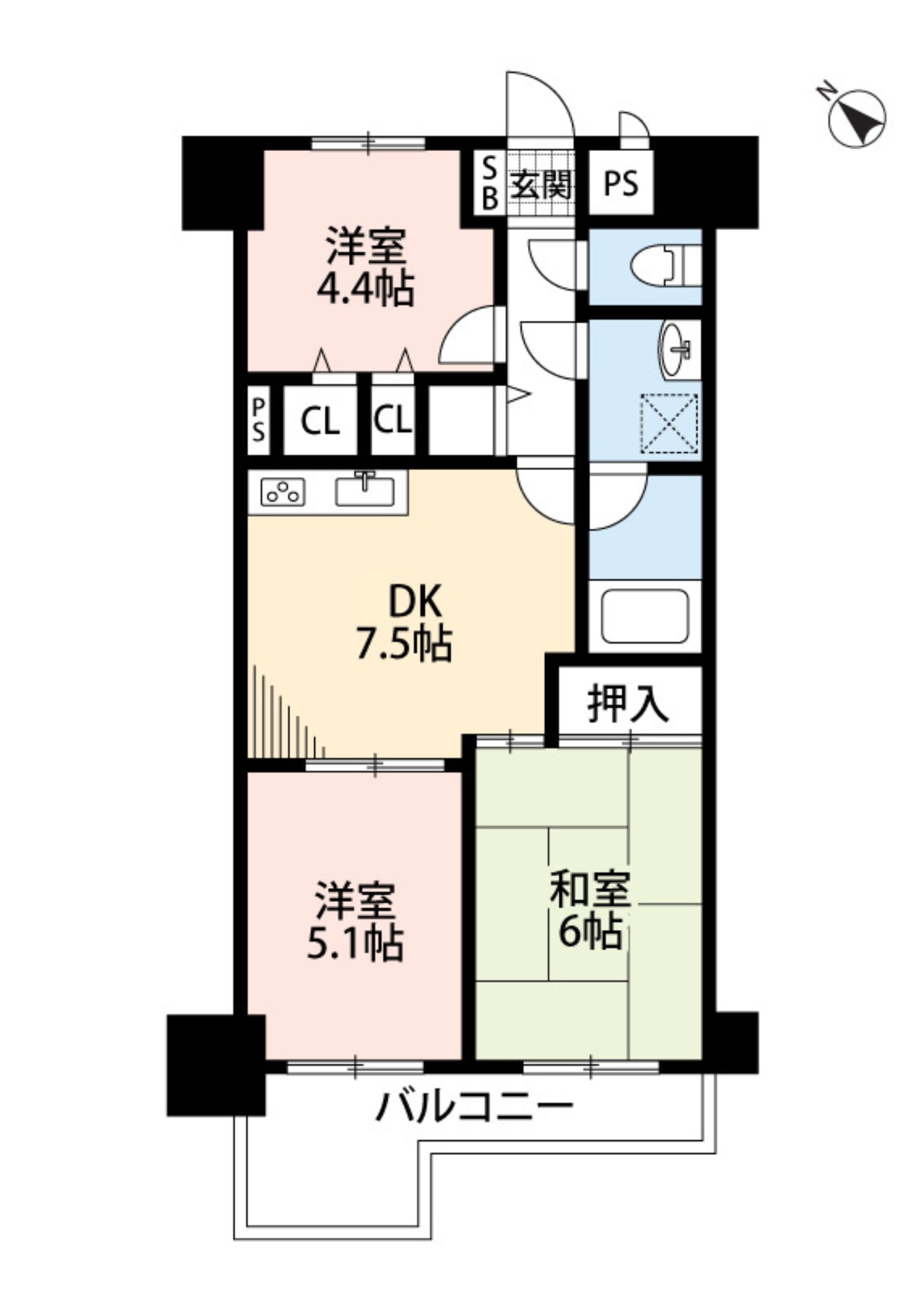 間取り:洋5.1・洋4.4・和6.・DK7.5