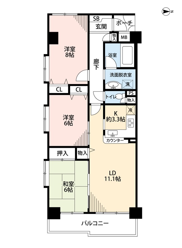 ポーチがあってプライバシーが保たれる東南角部屋です。